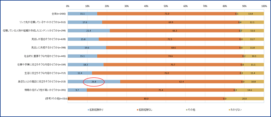 拡大図(図表5 偽・誤情報を拡散した経験がある人の特徴(記事の見出しをクリックする基準))