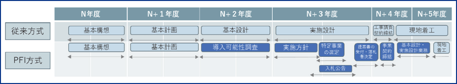 拡大図(図表4 従来方式とPFI 方式の事業化までのスケジュールのイメージ)