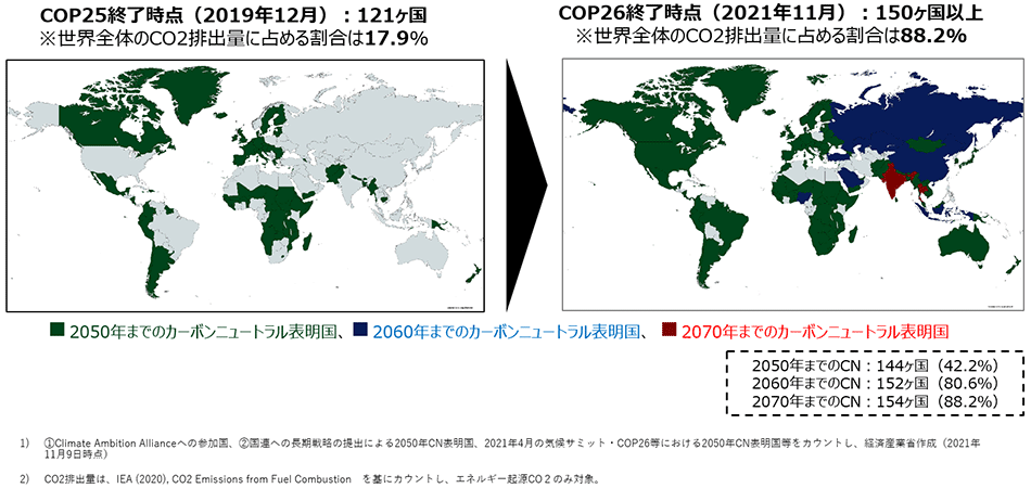 拡大図(図1 年限付きのカーボンニュートラルを表明した国・地域)