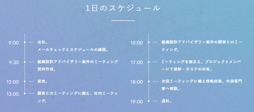 当然ながら、すべての物事がうまくいくわけではなく、壁にぶつかった経験もあります。会社体制の変更に向けた組織設計に関する調査・資料作成は、特に苦労したプロジェクトの一つです。