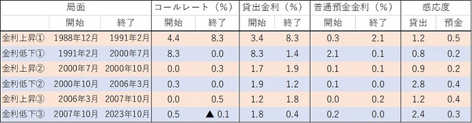 政策金利に対する預金・貸出金利の感応度は、経済情勢によって異なる