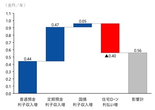 家計全体では、追加利上げの影響が年間で差し引き0.6兆円のプラス