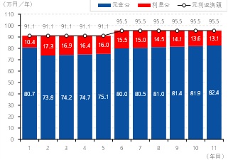 - (注)借入金額3,000万円、返済期間35年、元利均等返済、返済2年目に金利が0.35%から0.6%に上昇すると想定