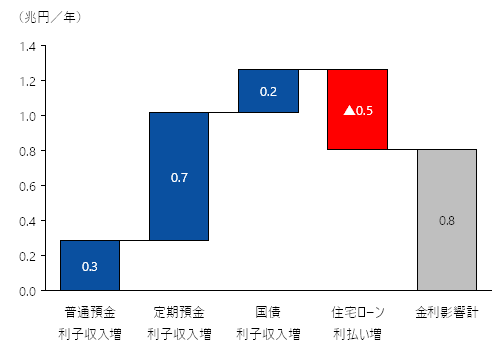 - (注)対象は二人以上世帯全体、図中の数字は金利影響計の値