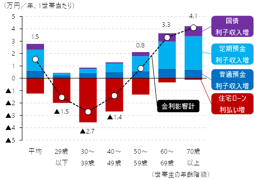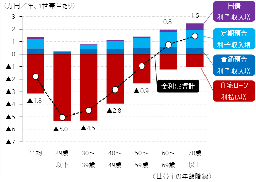 負債保有世帯への影響は1世帯当たり1.8万円のマイナス。若年世帯への悪影響大