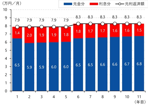 - (注)借入金額3,000万円、返済期間35年、元利均等返済。返済2年目に金利が0.58%から0.83%へ上昇すると想定