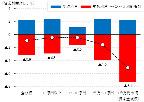 - (注)対象は金融・保険業を除く全産業、図中の数字は金利影響計の値