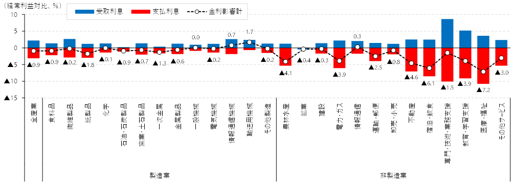 - (注)金融・保険業を除く、図中の数字は金利影響計の値