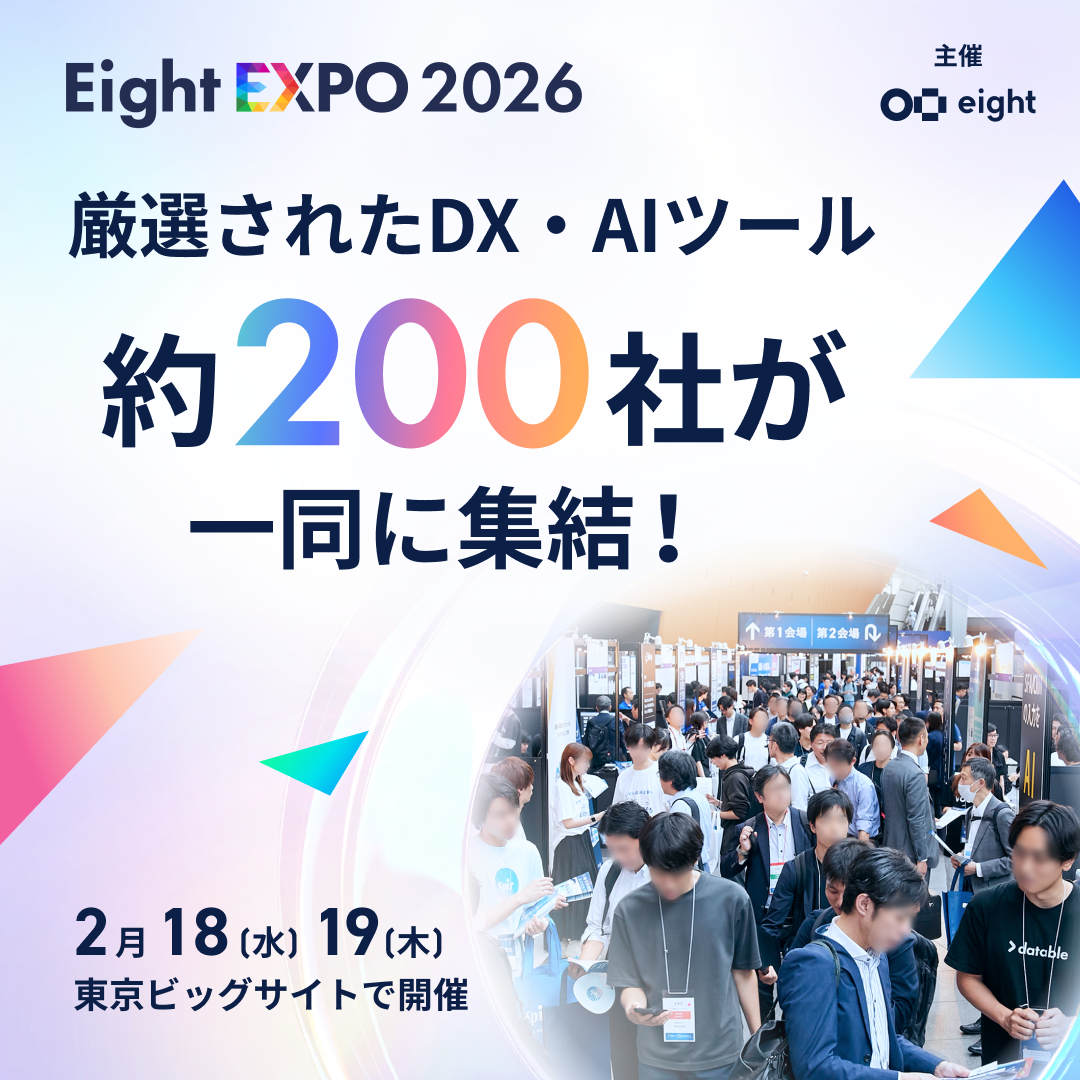 - 2026.02.02Eight EXPO 2026「AI-PAX 第2回 AIの実践的な活用展@東京ビッグサイト」に出展します。