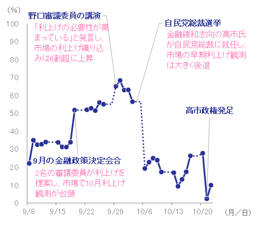 図表2 市場の利上げ織り込み(10月利上げ確率)
