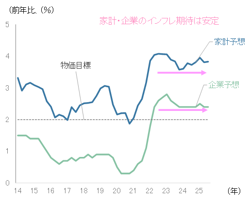 さらに、足元では、米国経済に関し、AIブームの持続性やプライベートクレジットに対する懸念が強まっている。米国経済の先行きについて不確実性が強まる局面では、日銀が利上げの再開を急ぐインセンティブは乏しく、むしろ金利据え置きによって景気の下振れリスクを回避する判断が優先される可能性が高いと予想する。